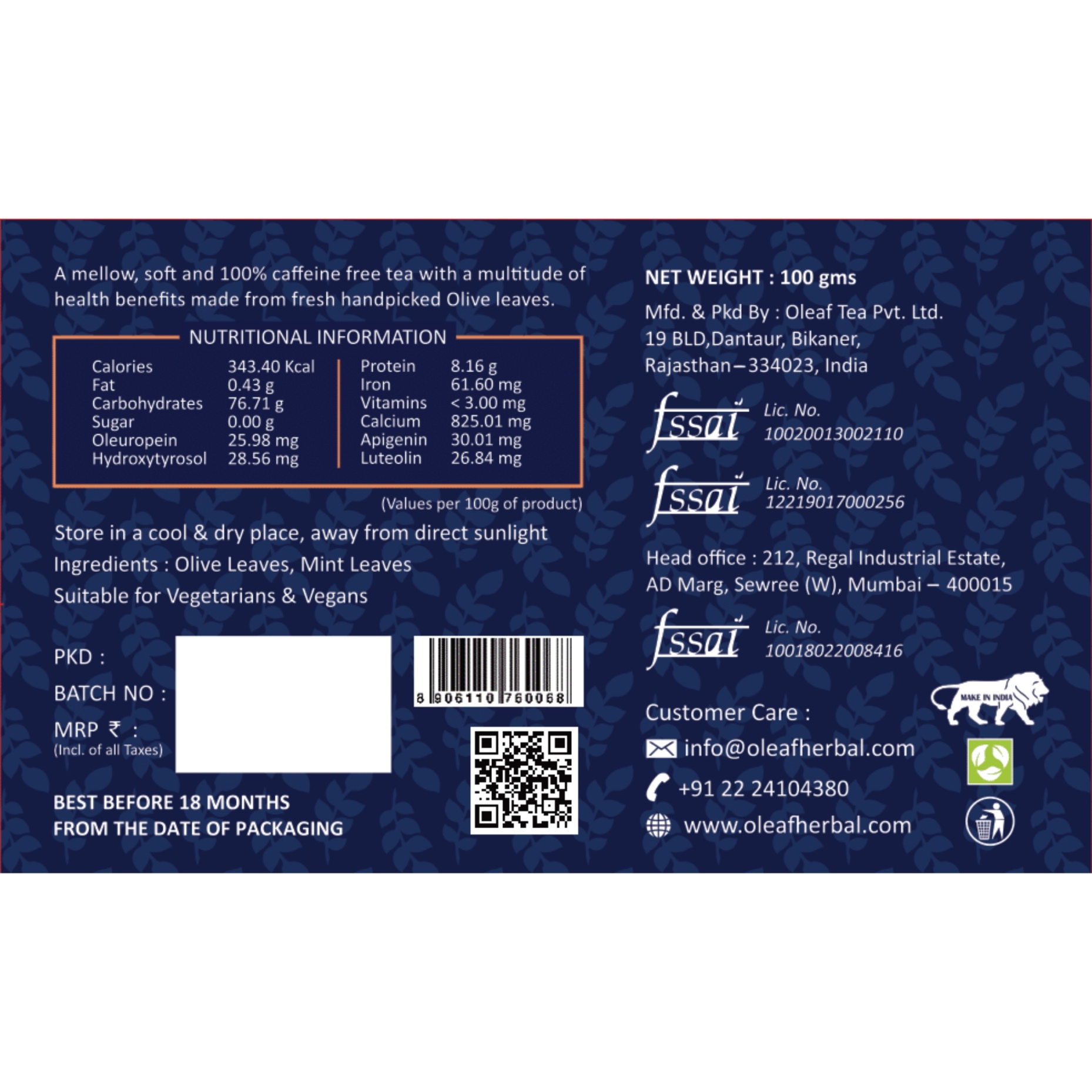 HERBAL OLIVE LEAF TEA - MINT (100 GMS)